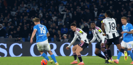 易边再战尤文加强进攻,第58分钟,尤文左路快速反击,连续配合后将球转移到右侧,麦肯尼跟进禁区角上接球稍作调整送出精妙斜塞,伊尔迪兹后排插上小角度半单刀直接转身扫射,皮球直入球门远端死角,尤文1:1扳平比分。第77分钟,那不勒斯右路压上,内雷斯45度角兜传门前,麦肯尼后点头球解围没有顶到球,皮球砸到他肩膀上又弹到门前,霍伊伦笑纳大礼,门线前头槌攻门得手梅开二度,那不勒斯2:1绝杀尤文。
