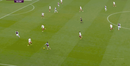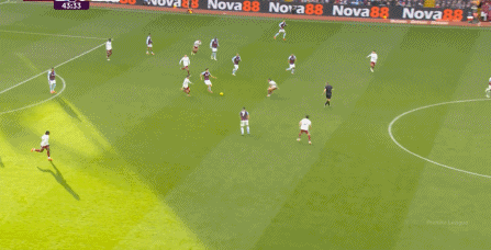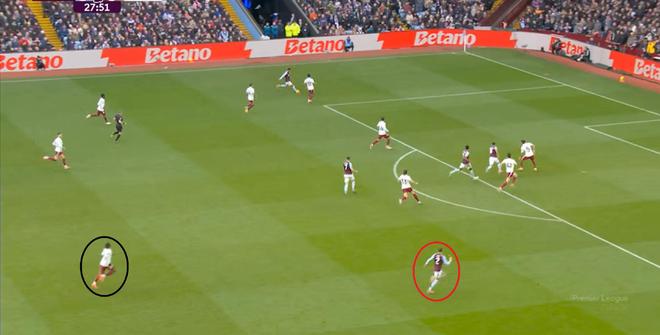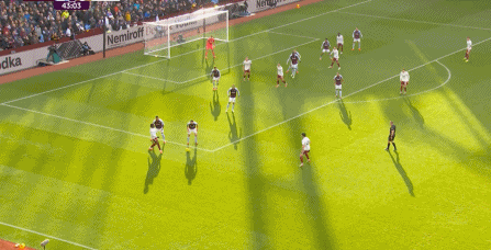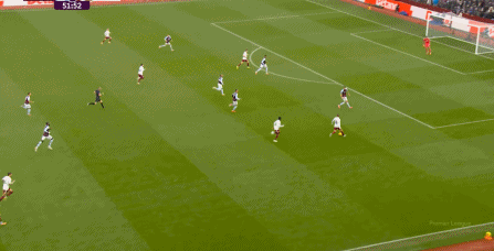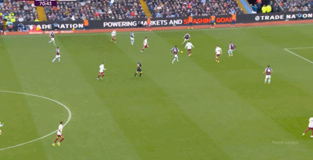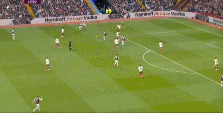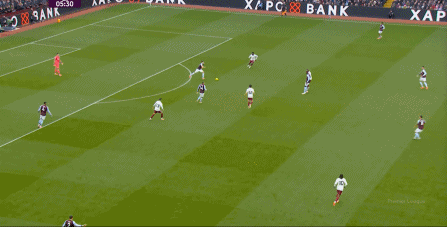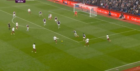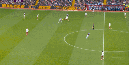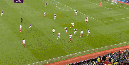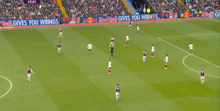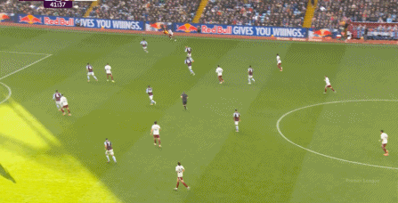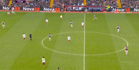 另外,阿斯顿维拉通过长传球,也能绕过逼抢和中场,直接从前场打出攻势: